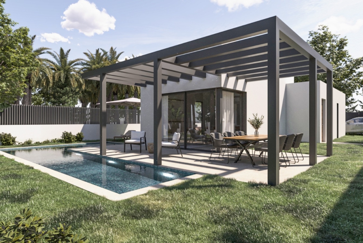Een tuin is optioneel en niet inbegrepen in de standaardprijs – dit biedt flexibiliteit voor wie zelf de buitenruimte wil vormgeven. Wel beschikt elke villa over meerdere terassen, pergola’s en een verharde parkeerplaats. Dankzij de strategische ligging geniet je van privacy, rust en natuur, terwijl het gezellige, historische centrum van Alcalalí en andere voorzieningen al wandelend bereikbaar zijn.