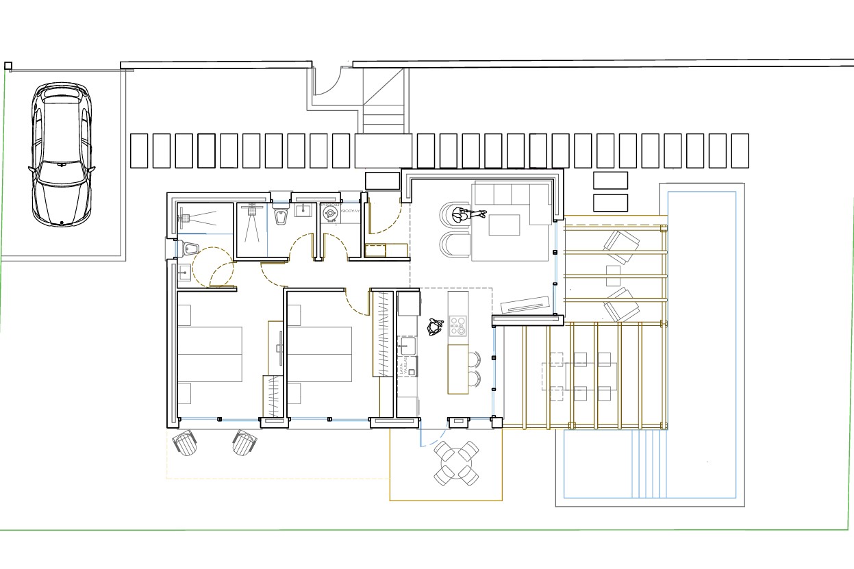 De plannen en renders zijn van model tiny, plannen van andere modellen beschikbaar op aanvraag. Een zwembad is niet inbegrepen in de prijs.